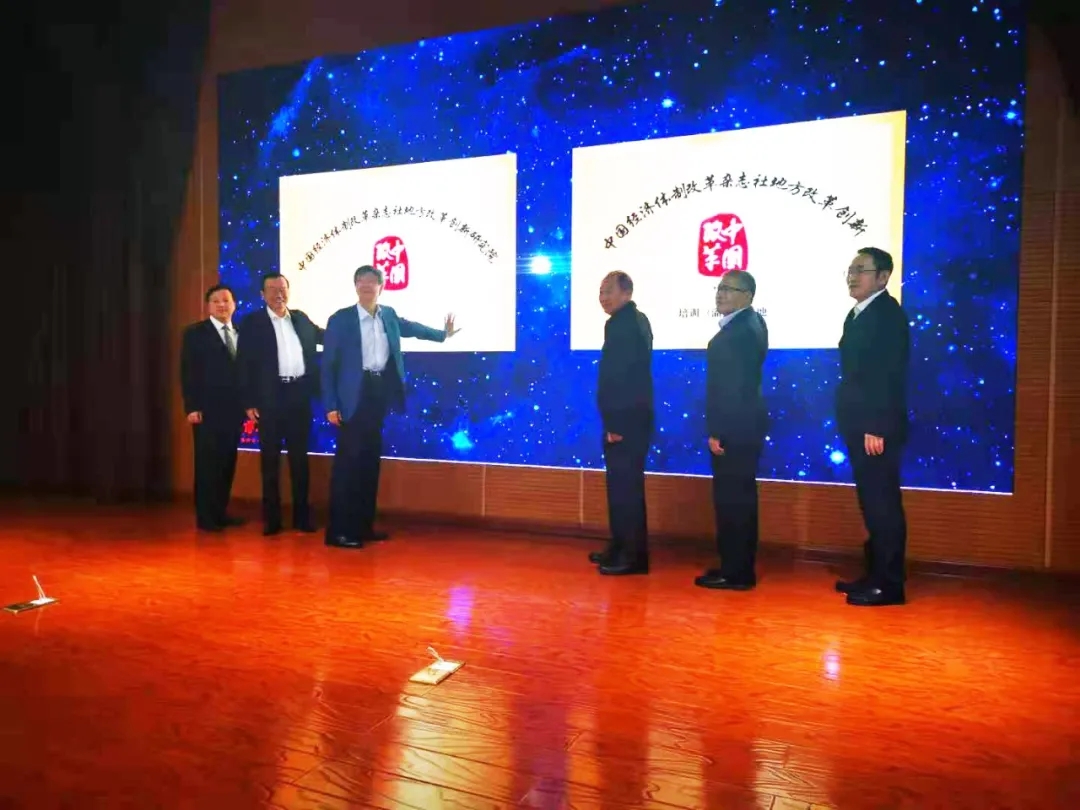開班儀式上,與會領導專家共同為中國經(jīng)濟體制改革雜志社地方改革創(chuàng)新研究院淄博分院、地方改革創(chuàng)新培訓(淄博)基地揭牌。