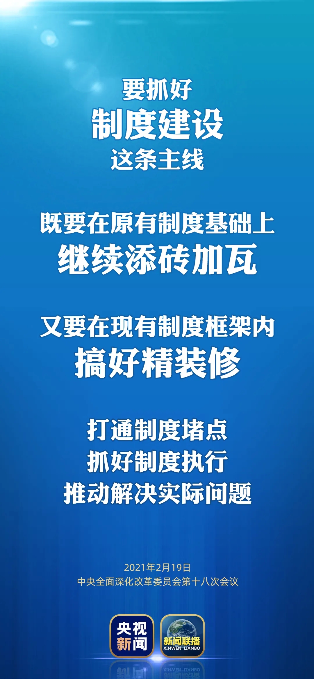 2月19日,中共中央總書記、國(guó)家主席、中央軍委主席、中央全面深化改革委員會(huì)主任習(xí)近平主持召開中央全面深化改革委員會(huì)第十八次會(huì)議并發(fā)表重要講話。他強(qiáng)調(diào),要完整、準(zhǔn)確、全面貫徹新發(fā)展理念,更加精準(zhǔn)地出臺(tái)改革方案,推動(dòng)改革向更深層次挺進(jìn)。來(lái)看梳理→