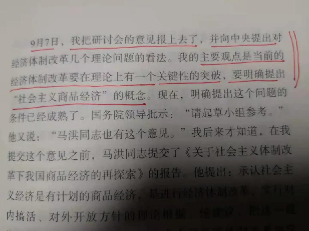 有意思的是,在十二屆三中全會召開之前,8月底,您在北京西苑旅社(現(xiàn)西苑飯店)召開研討會,并在9月7日將研討意見上報,建議中央“要明確提出‘社會主義商品經(jīng)濟(jì)’的概念”(后來見到有關(guān)領(lǐng)導(dǎo)這段批示:“請起草小組閱,馬洪同志也有這個意見。”)對于中國經(jīng)濟(jì)體制改革的目標(biāo)和理念,幾家研究報告(包括體改委、社科院以及南開報告等),可謂“不謀而合”。此時,雖然與您未曾謀面,但有一種“神交”的感覺。