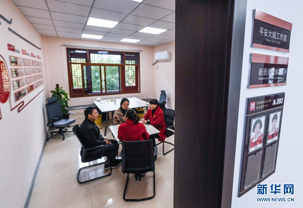 在浙江省湖州市織里鎮(zhèn)社會治理綜合服務(wù)中心的調(diào)解室,“平安大姐”工作室的志愿者對一起加工廠因加工童裝質(zhì)量差而導(dǎo)致業(yè)主虧損的糾紛進行調(diào)解(2019年11月29日攝)。新華社記者 徐昱 攝