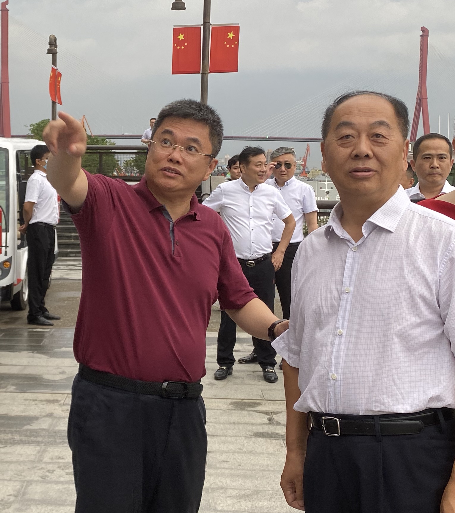 上海楊浦區(qū)委副書記、區(qū)長薛侃陪同趙艾一行調(diào)研楊浦區(qū)濱江步道等地
