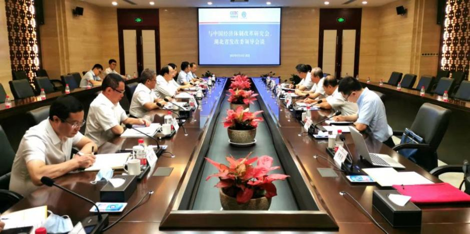 調(diào)研期間,彭森會長一行在湖北省發(fā)改委組織召開專題座談會。省發(fā)改委、經(jīng)信廳、財政廳、生態(tài)環(huán)境廳、國資委、市場監(jiān)管局、武漢市發(fā)改委以及省文化旅游投資集團有限公司,武漢商貿(mào)國有控股集團有限公司等單位負責同志參加座談會并介紹相關(guān)情況。