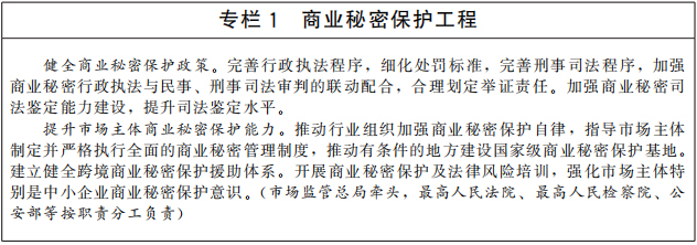 健全知識產(chǎn)權(quán)行政保護機制。加強中央在知識產(chǎn)權(quán)保護的宏觀管理、區(qū)域協(xié)調(diào)和涉外事宜統(tǒng)籌等方面事權(quán)。加強知識產(chǎn)權(quán)快保護機構(gòu)建設(shè)。在條件成熟的地區(qū)建設(shè)國家知識產(chǎn)權(quán)保護試點示范區(qū)。加強知識產(chǎn)權(quán)行政執(zhí)法指導制度建設(shè)。建立行政保護技術(shù)調(diào)查官制度。健全知識產(chǎn)權(quán)侵權(quán)糾紛行政裁決制度。健全跨區(qū)域、跨部門知識產(chǎn)權(quán)行政保護協(xié)作機制。加強商貿(mào)流通領(lǐng)域知識產(chǎn)權(quán)保護,制定商品交易市場知識產(chǎn)權(quán)保護國家規(guī)范,持續(xù)推進知識產(chǎn)權(quán)保護規(guī)范化市場建設(shè),凈化消費市場。(國家知識產(chǎn)權(quán)局牽頭,中央宣傳部、文化和旅游部、市場監(jiān)管總局等按職責分工負責)