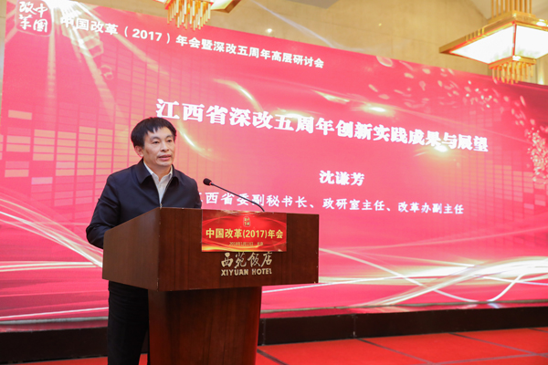 江西省委副秘書長、政研室主任、改革辦副主任沈謙芳指出,過去的五年,特別是近兩年來,江西省認(rèn)真落實(shí)習(xí)近平總書記的重要指示要求,把全面深化改革作為重大的政治任務(wù)采取了一系列硬措施,推動(dòng)各項(xiàng)改革、落實(shí)見效。江西省委省委改革辦自覺對(duì)標(biāo)中央精神確保中央重大改革部署落實(shí)見效;聚焦重點(diǎn)領(lǐng)域關(guān)鍵環(huán)節(jié)取得一批有影響實(shí)踐成果;建立健全改革落實(shí)機(jī)制取得了一批有價(jià)值的制度成果。