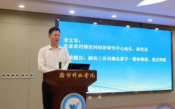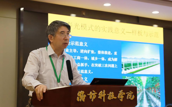 壽光市人大常委會(huì)副主任、濰坊科技學(xué)院校長(zhǎng)李昌武在致辭中表示,濰坊市委副書(shū)記、壽光市委書(shū)記林紅玉同志在全市三級(jí)干部會(huì)議上,對(duì)我校提出全面提升辦學(xué)水平,提高社會(huì)服務(wù)能力,加快推進(jìn)碩士點(diǎn)培育建設(shè)的要求。為落實(shí)林書(shū)記講話要求,加強(qiáng)區(qū)域經(jīng)濟(jì)和“壽光模式”研究,壽光市人民政府與中國(guó)經(jīng)濟(jì)體制改革研究會(huì)等聯(lián)合成立的“新時(shí)代鄉(xiāng)村振興與區(qū)域經(jīng)濟(jì)發(fā)展研究院”掛靠學(xué)院,引進(jìn)了大批高層次人才,形成了一批富有創(chuàng)造性、建設(shè)性的學(xué)術(shù)研究成果和決策咨詢意見(jiàn),“壽光模式”研究成果在國(guó)家發(fā)改委《改革內(nèi)參》刊發(fā)。成立了國(guó)家二級(jí)學(xué)會(huì)農(nóng)學(xué)思想與《齊民要術(shù)》研究會(huì),連續(xù)成功舉辦了10屆中華農(nóng)圣文化國(guó)際研討會(huì),師生原創(chuàng)52集動(dòng)畫(huà)片《農(nóng)圣賈思勰》在中央電視臺(tái)和山東衛(wèi)視播出。學(xué)校組建了博士、教授農(nóng)學(xué)科研服務(wù)團(tuán)隊(duì),成立了蔬菜產(chǎn)業(yè)學(xué)院、農(nóng)業(yè)技術(shù)培訓(xùn)基地,自主研發(fā)蔬菜品種28個(gè),在全國(guó)7個(gè)省區(qū)建立了育種基地,開(kāi)發(fā)運(yùn)營(yíng)了壽光市農(nóng)業(yè)智慧監(jiān)管服務(wù)公共平臺(tái),打造了覆蓋設(shè)施農(nóng)業(yè)全產(chǎn)業(yè)鏈的專業(yè)服務(wù)體系,為創(chuàng)新提升“壽光模式”和鄉(xiāng)村振興戰(zhàn)略的實(shí)施提供了有力支撐。