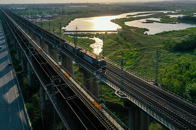 重載列車行駛在大秦鐵路上(2022年7月16日攝,無(wú)人機(jī)照片)。為做好迎峰度夏能源保供工作,中國(guó)鐵路太原局集團(tuán)有限公司在確保運(yùn)輸安全的前提下全力提升煤炭運(yùn)量。新華社記者 曹陽(yáng) 攝