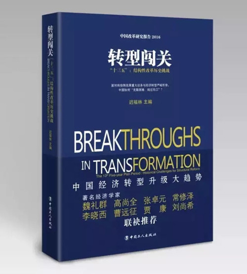 2016年2月25日,由中國(海南)改革發(fā)展研究院(以下簡稱中改院)、中國工人出版社主辦的《轉(zhuǎn)型闖關(guān)——“十三五”:結(jié)構(gòu)性改革歷史挑戰(zhàn)》新書發(fā)布會在京舉行。中國行政體制改革研究會會長、中改院董事局主席魏禮群,原國家體改委副主任、中改院名譽院長高尚全,中國經(jīng)濟體制改革研究會顧問宋曉梧,全國人大常委員會委員、外事委員會副主任委員趙白鴿,中國社會科學(xué)院學(xué)部委員張卓元,商務(wù)部原部長助理黃海,國家發(fā)展和改革委員會經(jīng)濟研究所教授常修澤,北京師范大學(xué)校學(xué)術(shù)委員會副主任李曉西,中銀國際研究公司經(jīng)濟學(xué)家曹遠(yuǎn)征等專家出席本次發(fā)布會。