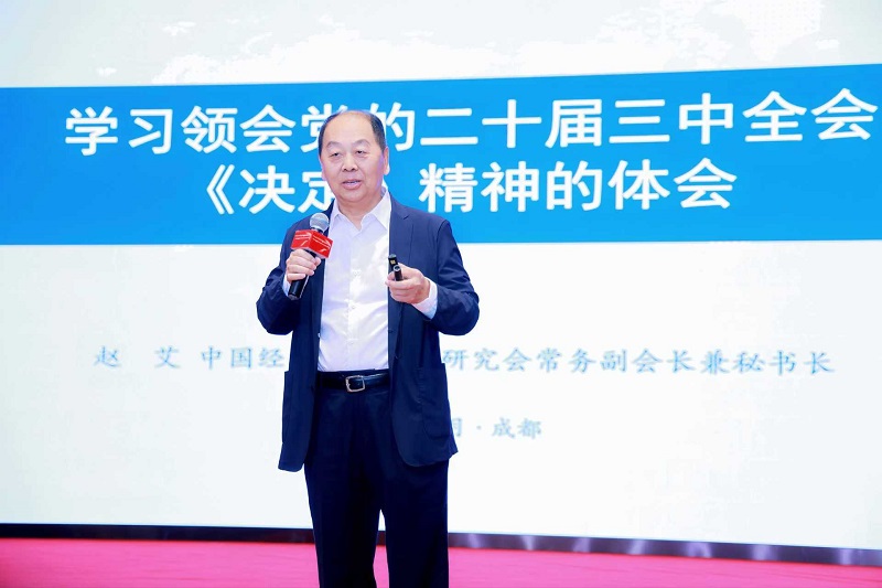趙艾談到,黨的二十屆三中全會是在新時代新征程進一步全面深化改革開放,推進中國式現(xiàn)代化關(guān)鍵時期召開的一次十分重要的會議,全會審議通過了《中共中央關(guān)于進一步全面深化改革、推進中國式現(xiàn)代化的決定》,提出了60條300多項重點改革舉措,內(nèi)容豐富、分量很重、成色十足?!稕Q定》對于繼續(xù)完善和發(fā)展中國特色社會主義制度,推進國家治理體系和治理能力現(xiàn)代化,到2035年全面建成高水平社會主義市場經(jīng)濟體制,中國特色社會主義制度更加完善,基本實現(xiàn)國家治理體系和治理能力現(xiàn)代化,基本實現(xiàn)社會主義現(xiàn)代化,為到本世紀中葉全面建成社會主義現(xiàn)代化強國具有十分重要的意義。成都高新區(qū)在全面深化改革開放,以科技創(chuàng)新為引領(lǐng),因地制宜發(fā)展新質(zhì)生產(chǎn)力,激發(fā)高質(zhì)量發(fā)展內(nèi)生動力,推動產(chǎn)業(yè)結(jié)構(gòu)優(yōu)化升級等方面,積累了一系列可圈可點的經(jīng)驗和做法,取得了一系列的亮眼成績。希望成都高新區(qū)百尺桿頭,再接再厲,按照黨的二十屆三中全會的精神,進一步深化體制機制改革創(chuàng)新,以新質(zhì)生產(chǎn)力發(fā)展為引擎,推動高質(zhì)量發(fā)展等方面取得更優(yōu)異的成績。中國經(jīng)濟體制改革研究會十分樂意與成都高新區(qū)就體制機制改革創(chuàng)新的重大問題開展合作研究。