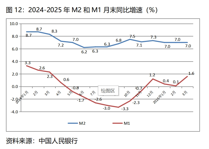 (三)廣義貨幣供應(yīng)量(M2)增速比上年全年和上年同期均保持回落,狹義貨幣供應(yīng)量(M1)增長(zhǎng)仍比較緩慢。3月末,廣義貨幣供應(yīng)量同比增長(zhǎng)7.0%,比上年年底增長(zhǎng)7.3%回落了0.3個(gè)百分點(diǎn),比上年同期增長(zhǎng)8.3%回落1.3個(gè)百分點(diǎn),并且已連續(xù)3個(gè)月保持了7.0%的增速;3月末,狹義貨幣供應(yīng)量同比增長(zhǎng)1.6%,比上年年底增長(zhǎng)1.2%回升了0.4個(gè)百分點(diǎn),比上年同期增長(zhǎng)2.3%回落0.7個(gè)百分點(diǎn)。從實(shí)現(xiàn)經(jīng)濟(jì)的穩(wěn)定增長(zhǎng)和價(jià)格的合理上漲要求看,貨幣供應(yīng)量增速確實(shí)還是有些緩慢。