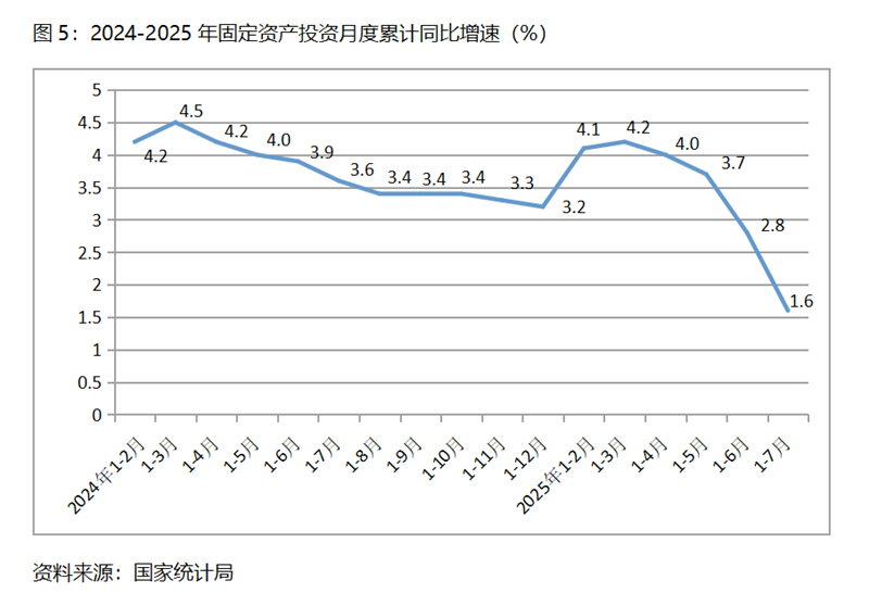 (三)投資增速持續(xù)回落。1-7月份,固定資產(chǎn)投資同比增長1.6%,比1-6月份增長2.8%回落了1.2個(gè)百分點(diǎn),1-6月份增速比1-5月份增長3.7%回落了0.9個(gè)百分點(diǎn),增速呈現(xiàn)出持續(xù)的回落。1-7月份國有控股投資同比增速比1-6月份回落1.5個(gè)百分點(diǎn);民間投資降幅擴(kuò)大了0.9個(gè)百分點(diǎn)。三次產(chǎn)業(yè)投資中,第一產(chǎn)業(yè)投資增速回落0.9個(gè)百分點(diǎn),第二產(chǎn)業(yè)投資增速回落1.3個(gè)百分點(diǎn),第三產(chǎn)業(yè)投資降幅擴(kuò)大1.2 百分點(diǎn)。固定資產(chǎn)投資增速較大幅度的持續(xù)回落,需引起宏觀調(diào)控的高度重視。