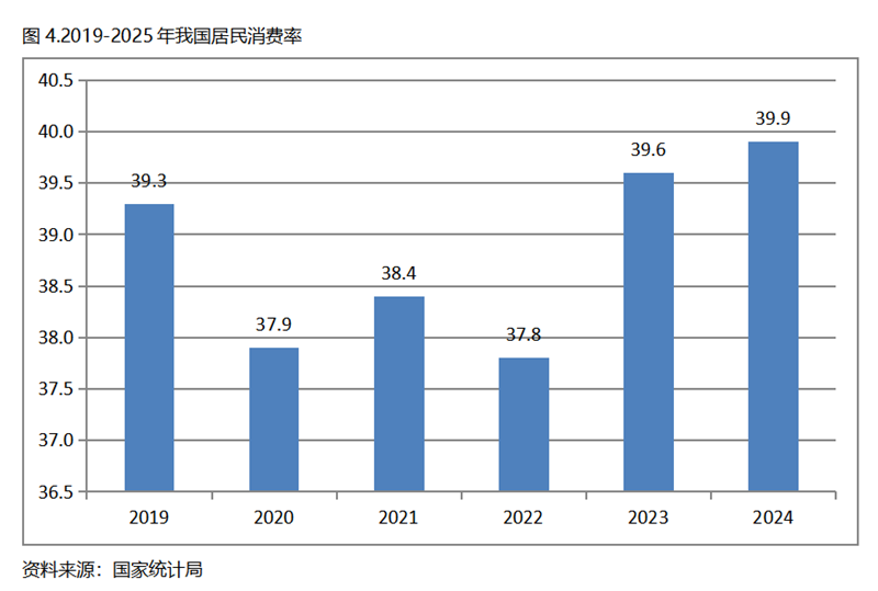 我國(guó)是2019年人均GDP超過(guò)1萬(wàn)美元的,在2019-2024年的5年期間,居民消費(fèi)率也呈現(xiàn)先落后升的走勢(shì),總體上看是在低位上保持著穩(wěn)定的態(tài)勢(shì),2024年比2019升0.6個(gè)百分點(diǎn)。需要指出的,我國(guó)居民消費(fèi)率在人均GDP超過(guò)1萬(wàn)美元后,雖然也保持總體的穩(wěn)定,但明顯處于較低水平。